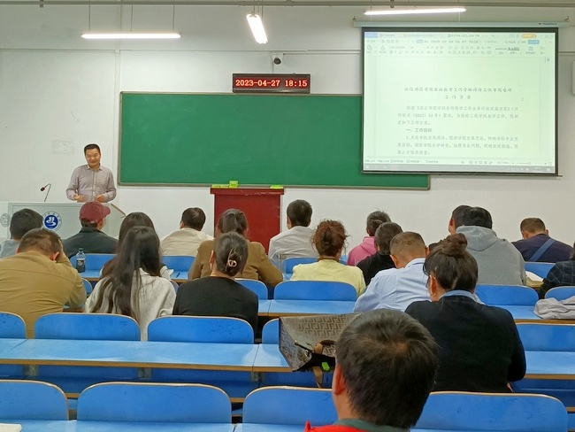 4月27日下午,物电学院在崇文楼A706召开本科教学工作合格评估部署会,会议由院长王绍明同志主持,全院教职工参加了会议。