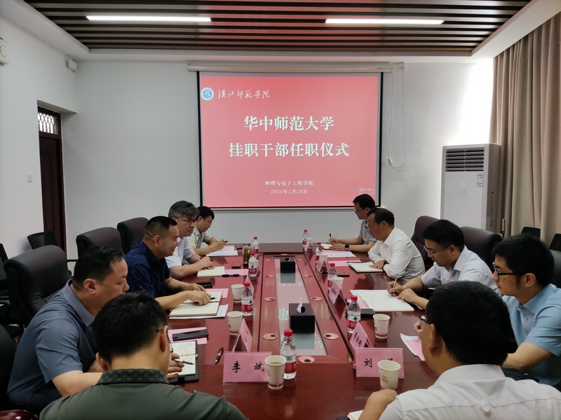 5月28日上午,物电学院在崇文楼A503会议室举行华中师范大学挂职干部任职会,校党委副书记周明华、华中师范大学物理科学与技术学院党委书记金新利、华中师范大学物理科学与技术学院挂职干部李治明、校党委组织部和教务处相关负责人及学院领导班子参加。