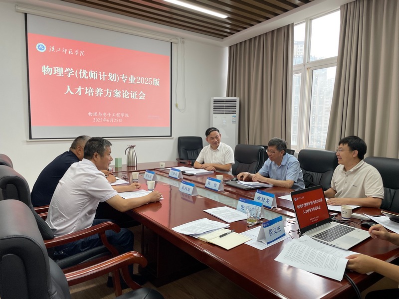 6月25日上午,bat365正版唯一官网在崇文楼A503召开物理学和科学教育专业2025版人才培养方案修订论证会。副校长陈俊、教务处副处长欧修龙、黄冈师范学院物理与电信学院院长兰智高、十堰市茅箭中学校长袁丙琼、十堰市天津路中学校长刘庆涛、十堰市科技教育学会会长郭峰、十堰市茅箭区中小学教学研究室教研员胡琼等校内外专家应邀参会。院长助理史长城主持论证会。