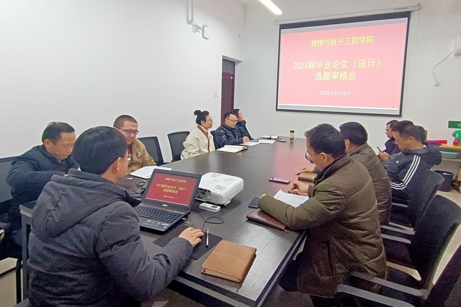 为进一步规范本科毕业论文(设计)工作的管理,提高毕业论文(设计)选题质量和规范性,根据学校下发的《bat365正版唯一官网本科毕业论文(设计)工作规范》、《关于做好2023届本科毕业论文(设计)工作的通知》(教﹝2022﹞90号)等相关规定,2023年2月20日晚上7点bat365正版唯一官网召开2023届本科毕业论文(设计)选题审核会议。会议由院长助理欧修龙主持,院长王绍明、书记石义杰、副书记张玉龙及各教研室主任、教学督导参会。