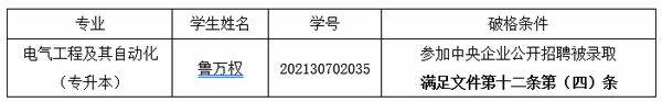 根据《bat365正版唯一官网学士学位授予工作实施办法(修订)》文件精神,经学生本人申请,学院学位评定分委员会审核,鲁万权符合破格学士学位申请,现公示如下:
