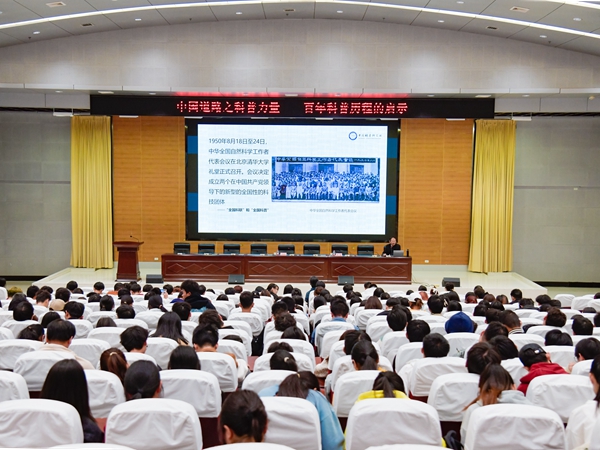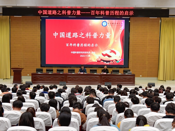11月4日下午,由宣传部、科研处主办,物电学院承办的题为《中国道路之科普力量》科普学术讲座在学术报告厅圆满举行,讲座由中国科普研究所郑念研究员主讲,校党委常委、副校长吴红斌主持,物电学院院长王绍明和近600名师生参加了此次活动。