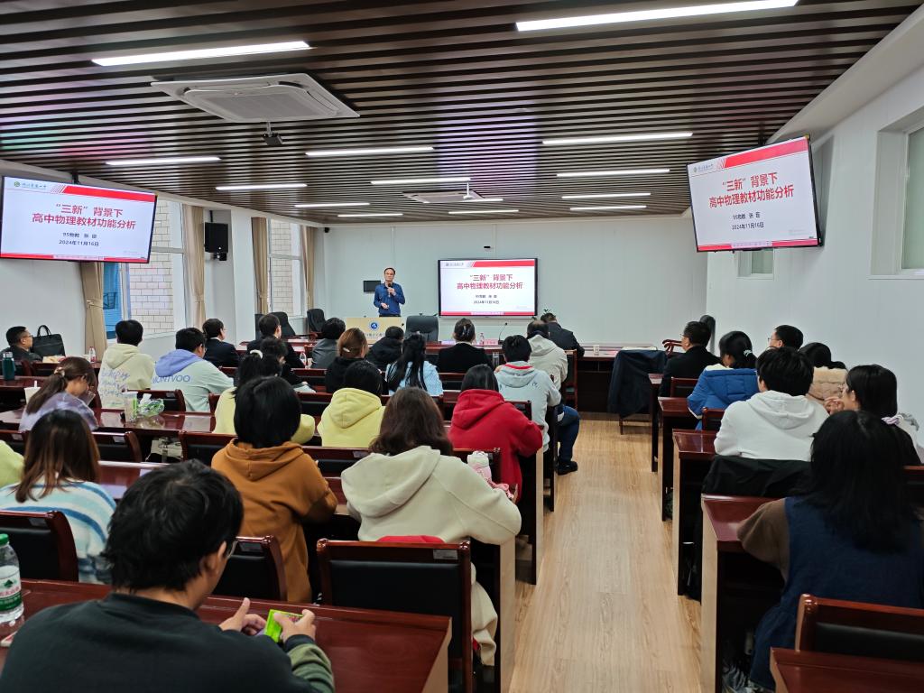 11月16日下午,bat365正版唯一官网特邀1995级优秀校友、湖北名师、中学物理正高级教师、湖北省物理特级教师、襄阳市第四中学副校长张臣在崇文楼B809为我院师生作题为“‘三新’背景下高中物理教材功能分析”的学术讲座。