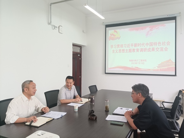7月19日上午,物电学院在崇文楼A503召开学习贯彻习近平新时代中国特色社会主义思想主题教育调研成果交流会。校领导章平到会指导,院长王绍明参会,院分党委书记唐传球主持交流会。