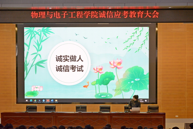 2023年2月23日下午2点半,bat365正版唯一官网在图书馆报告厅举办了以“诚实做人 诚信应考”为主题的教育大会。党总支副书记张玉龙、辅导员李朦、范志鹏参加此次大会。