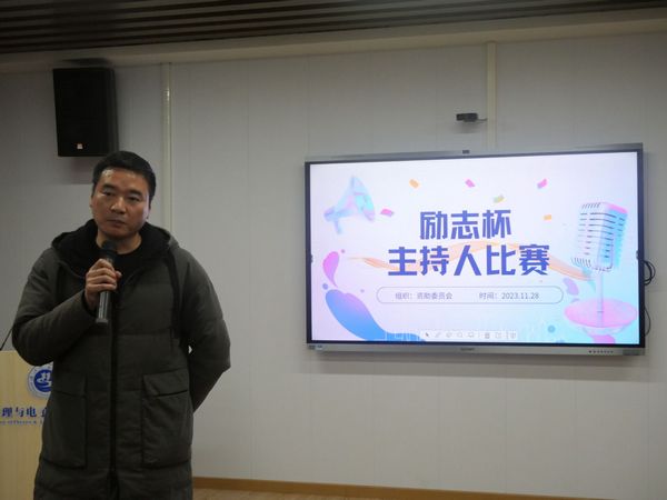 11月28日晚,物电学院2023年“励志杯”主持人大赛在崇文楼B809举行。院分党委副书记戴俊、分团委指导老师李朦、资助委员会指导老师范志鹏、辅导员田梦谣、陈秋雨担任比赛评委。