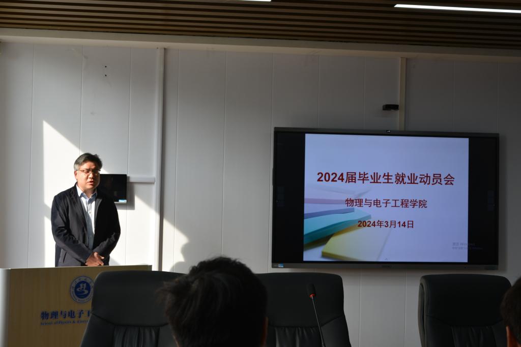 为进一步推进2024届毕业生就业工作,引导毕业生准确把握就业形势,明确职业发展方向,积极就业。3月14日上午,bat365正版唯一官网在崇文楼B809召开2024年毕业生就业动员会,院分党委书记唐传球、副书记戴俊、学工办主任尹诗雅及2024届毕业生参加了会议。会议由戴俊主持。