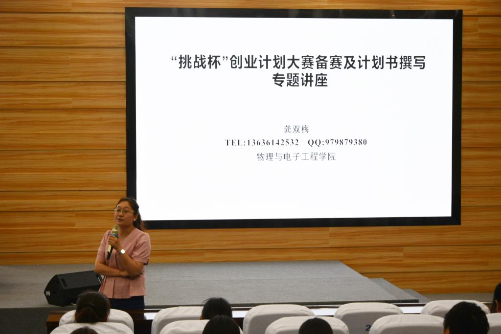 4月26日晚,物电学院分团委在崇文楼C101举办了“挑战杯”大学生创业计划竞赛宣讲会。本次讲座特邀龚双梅老师主讲,旨在为学生提供关于挑战杯竞赛的全面介绍和备赛策略指导。全院200名学生参加了此次活动。