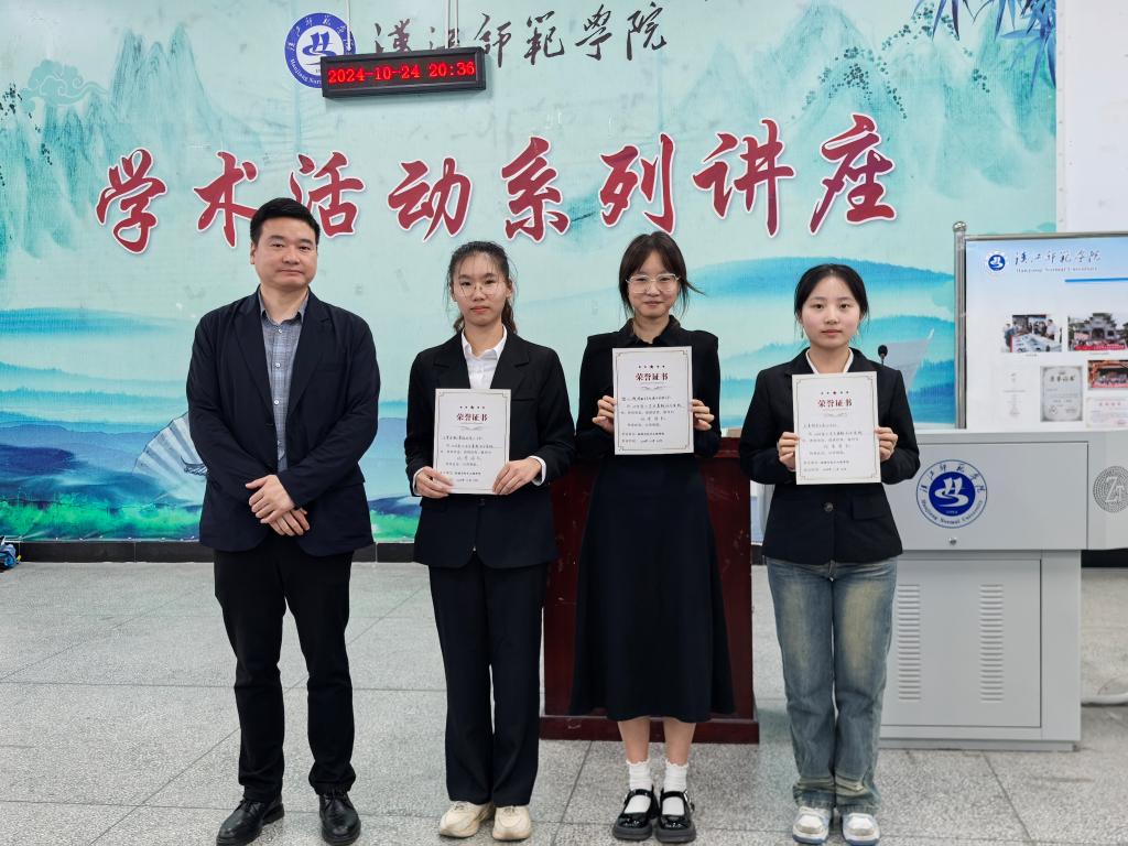 经各实践团队申报和学院遴选,此次共有7支优秀实践团队入围,各团队代表依次上台汇报。他们通过PPT展示、视频播放和现场讲解等方式,分别从活动组织、具体实施、实践成果等方面进行了展示,分享他们在社会实践中的所见所闻、所感所悟。汇报内容涵盖了乡村振兴、科普知识宣讲、普通话推广、环境保护、支教服务等多个领域,充分展示了青年学生的社会责任感和实践能力。最终,“点亮科学之光”小分队等三支团队荣获“优秀暑期社会实践团队”称号,杨佳敏等七位同学荣获“先进个人”称号。