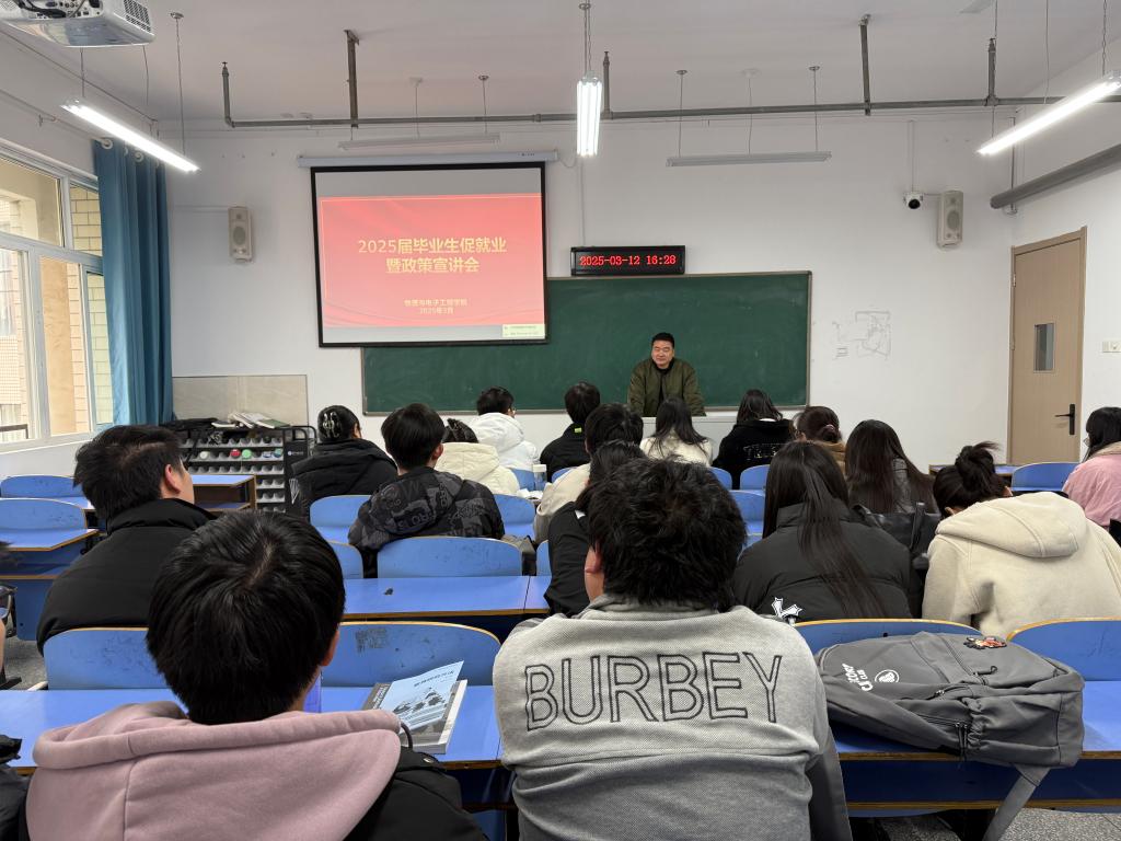 为进一步做好2025届毕业生就业工作,推动全体毕业生更加全面地掌握当前就业形势与政策,实现高质量充分就业,3月11日—12日,bat365正版唯一官网在各毕业班举办2025届毕业生促就业暨政策宣讲会,会议由院分党委副书记戴俊主讲,毕业班辅导员贺培及2025届毕业生参会。